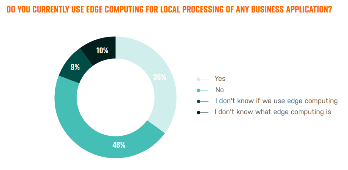 Half take a “cloud-first” approach when selecting applications, the study suggests. In fact, about 46 percent of respondents claim they do no edge processing. About 35 percent say they have at least one application running locally, at the edge.